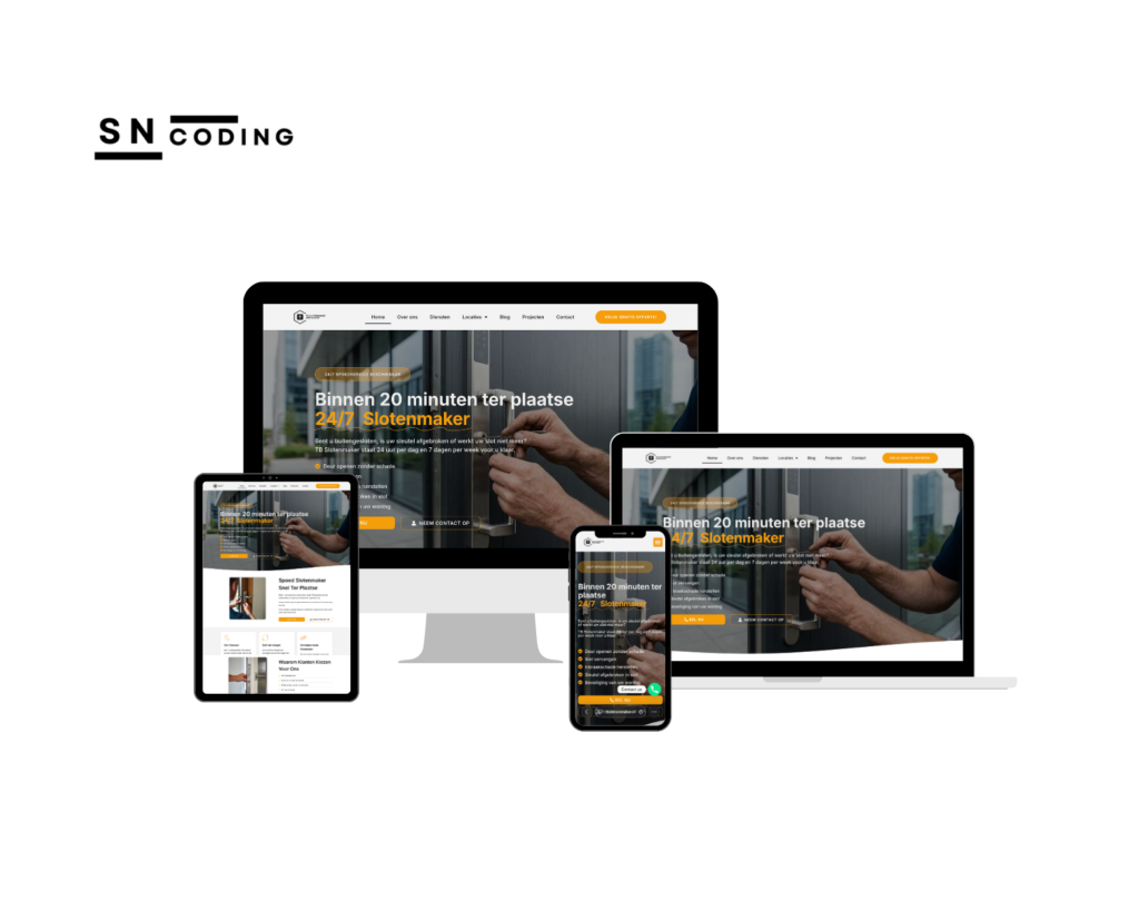 Een no nonsense website die direct vertrouwen uitstraalt helder, snel en altijd klaar voor actie wanneer elke seconde telt.